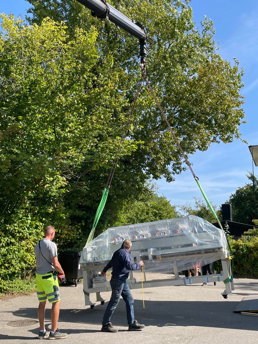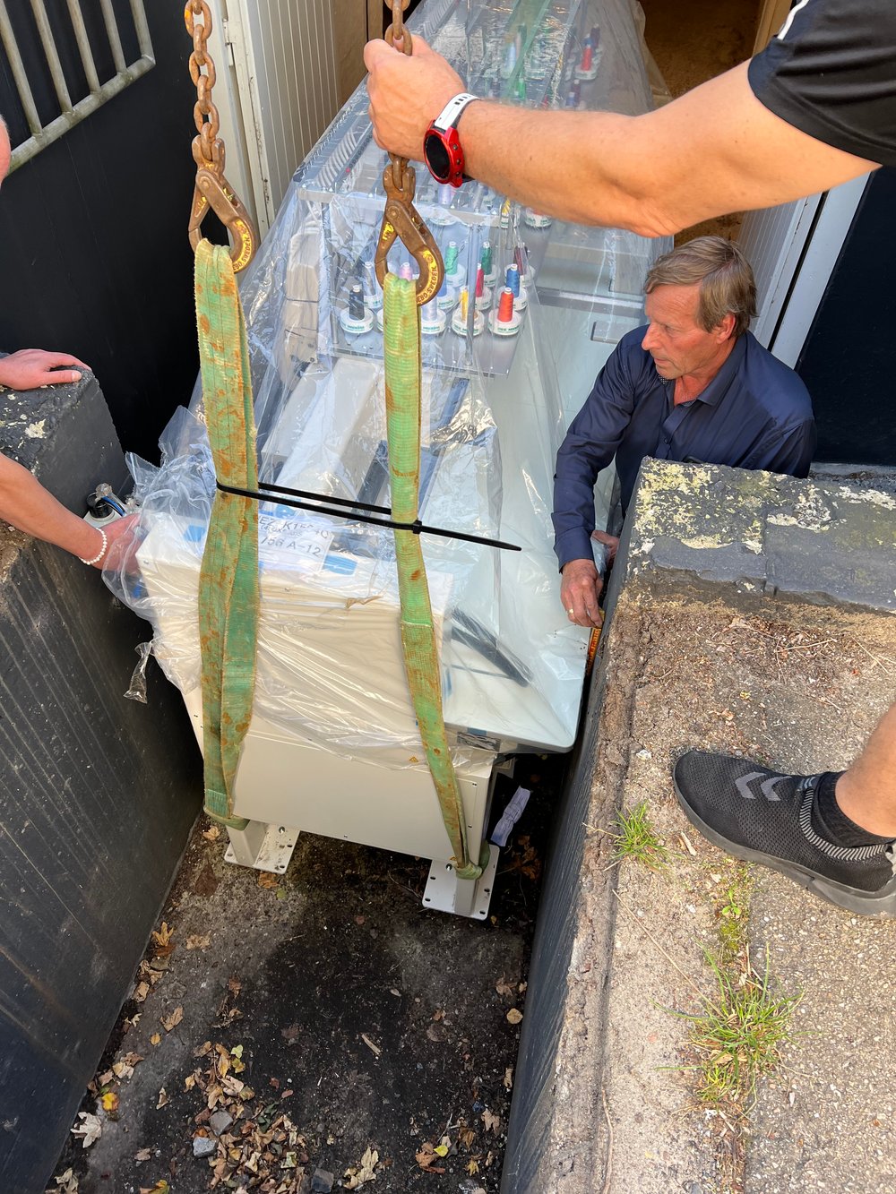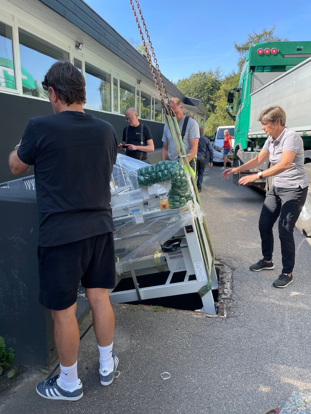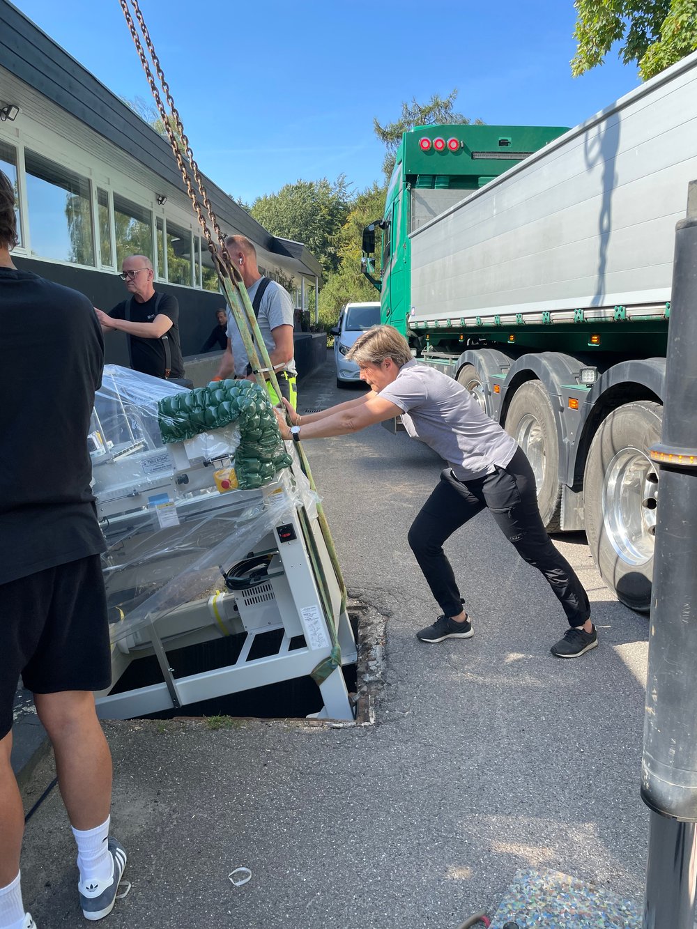 Vores nye maskine står nu trygt og sikkert i kælderen og kører på fuld tryk til stor glæde for mange.