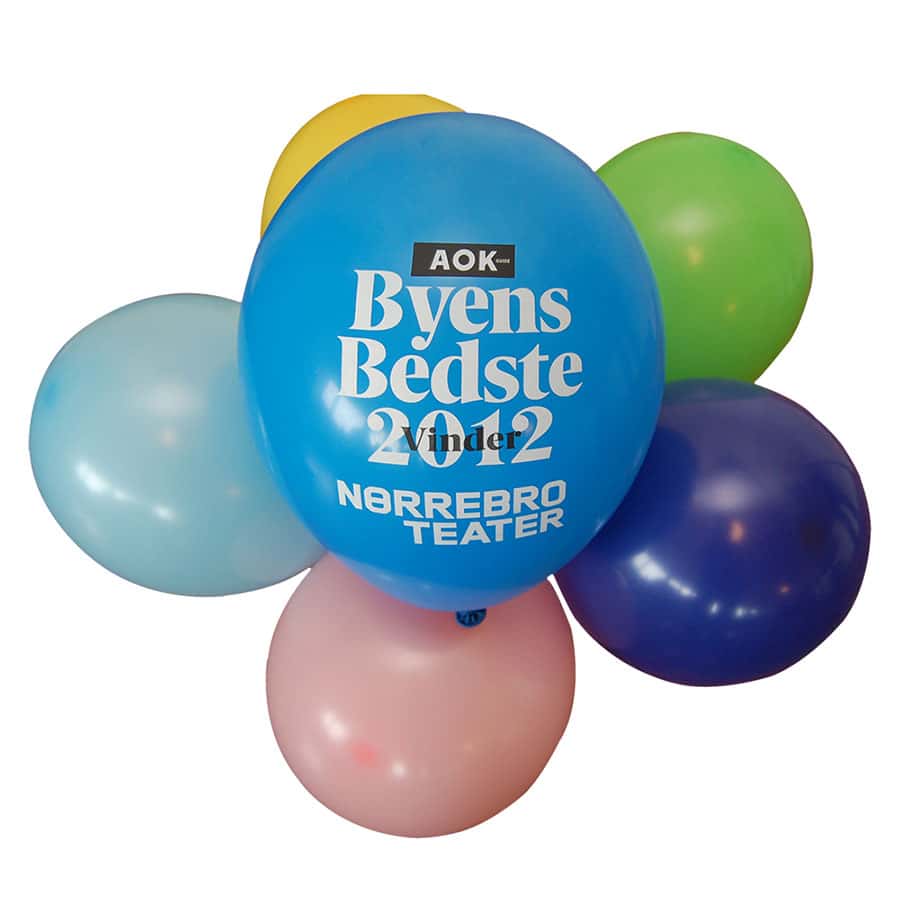 Balloner med trykt budskaber kan bruges til enhver lejlighed eller event. Det er en effektiv og festlig måde at udbrede budskaber på. Vi kan tilbyde optil 81 forskellige farver, forskellige størrelser og former. Vores minimum er blot 1000 stk. pr. ordre, som kan trykkes på en side eller begge sider.