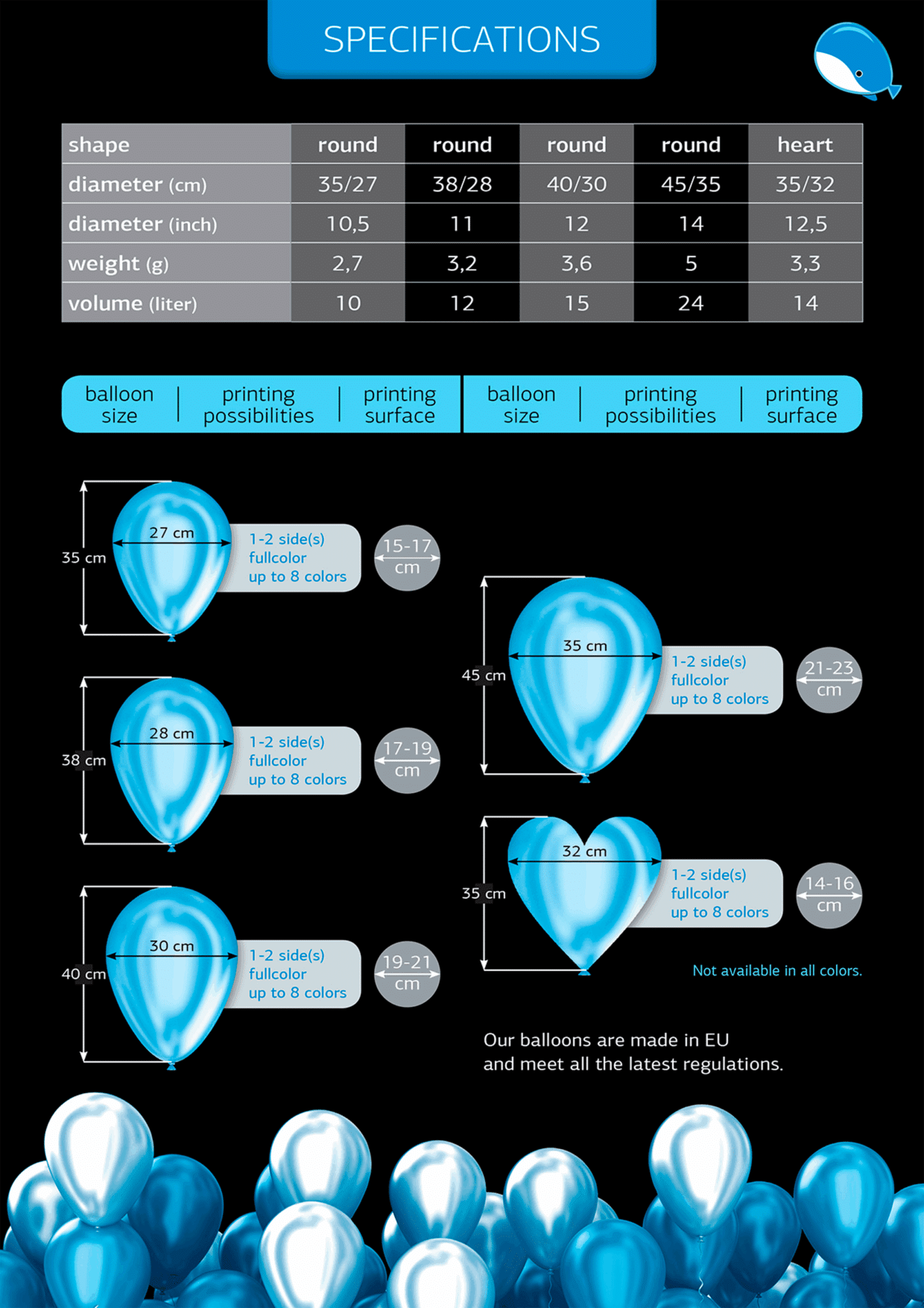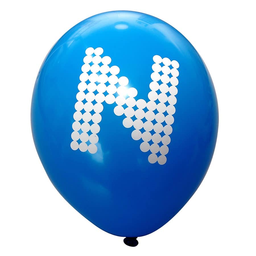 Det er muligt at trykke logo på 4 ”sider” af ballonen. Det er også muligt at trykke på toppen, så i alt 5 trykfelter. All over print kan vi også lave, dog er det teknisk ikke altid muligt.